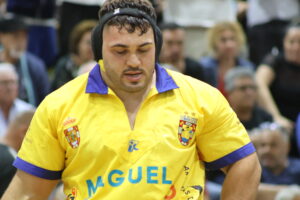 Se volvió a pisar la arena de Tasagaya, y en una final, con el alma y espíritu de lucha también remangado en los 12 pantalones azules que desfilaron. Tras una primera agarrada separada entre Cristo León (J) y Diego Fuentes (J), Lamine Dieng (J) ya estaba metido debajo del rival, comenzando con su repertorio en el que dejó fuera de brega a Ángel Sosa (J), para después toparse ya con el primero de los Destacados dándole las dos a Carlos Peraza (DC). Su mano por dentro marcó el ritmo de la agarrada, contreando en el primer acto y sacándolo por arriba apoyándose en esa mano como si quisiera Tocar por dentro. Remató su gran actuación ante Eusebio Díaz (DB): cayó en la primera con Cango, pero se rehizo empatando y dejando un magistral Toque p´trás en la tercera. En ese ímpetu también enroscó Garabato Raúl Díaz ante Jean Pierre, en la primera atacando, repitiendo en una preciosa contra. 3-6.